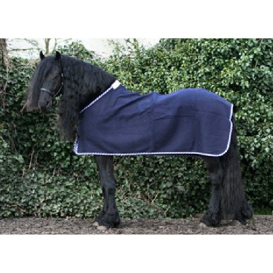 Het zweet wordt opgenomen en uw paard blijft droog. De deken is uitgevoerd met 2 zwart lederen stoten met koperen gesp. Gemaakt van eerste kwaliteit wol, omgezoomd met Friese Bies.