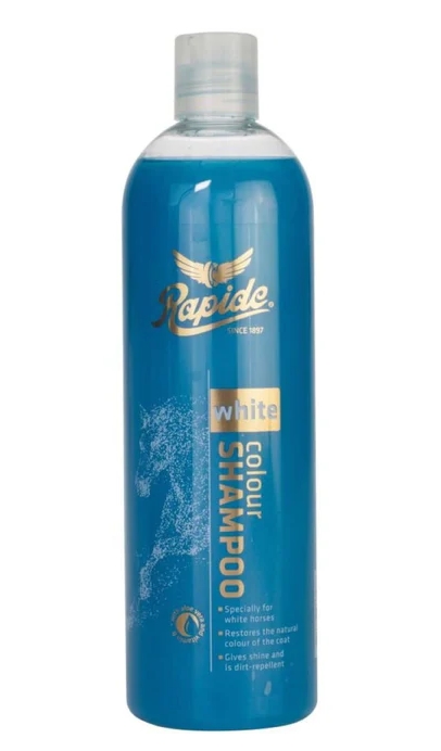 Rapide Shampooing pour chevaux blancs 500ml. --- Avec aloe vera et vitamine B, complexe actif probiotique spécialement conçu pour les chevaux blancs.