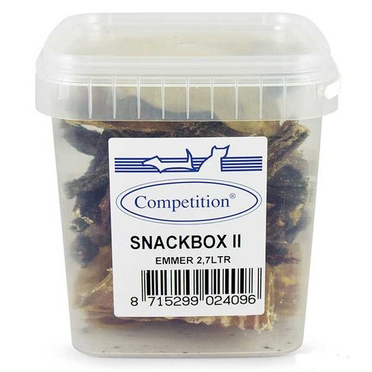 Competition Snackbox II. Grote 2.7 ltr. emmer gevuld met kauwsnacks voor honden.