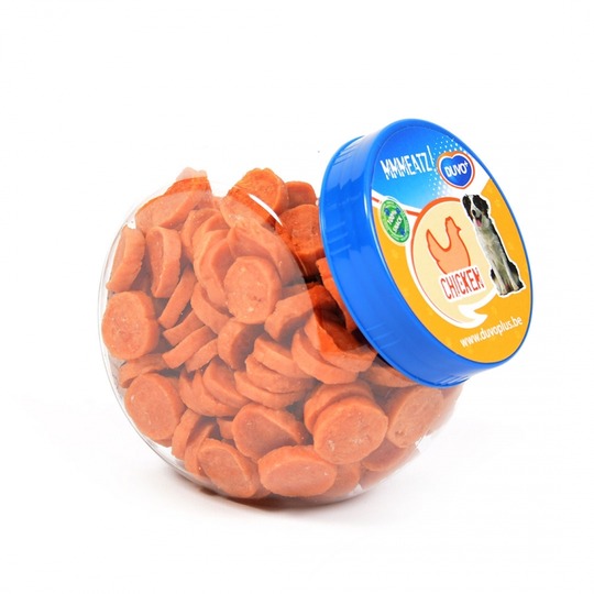 De Duvo + Mmmeats Chicken Jerky Chips zijn zachte en smakelijke kippensnacks, goed verteerbaar en gezond!