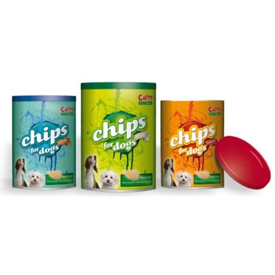 Chips voor honden. Nu heeft uw hond zijn eigen chips ! Slechts 1.1% vet en in 2 smaken.