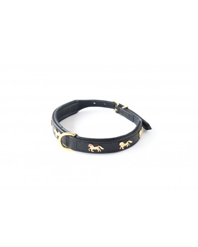 Extra kwaliteit lederen, gevoerde honden halsband met messing paardjes en gespen.