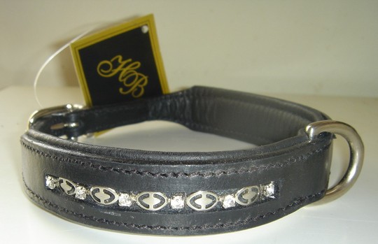 Halsband Brown Gold. Gevoerde lederen halsband met mesing fournituren.