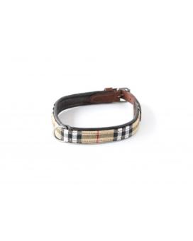 HB Hondenhalsband Bandana Schotse ruit Blauw. --- Lederen halsband met Schotse bandana.