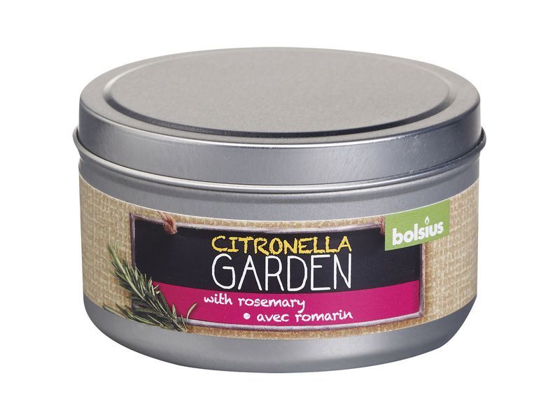 Bolsius Geurkaars Blik Citronella-Rozemarijn 49/87. -- 24 Branduren, door de citronella en heerlijke kruidige geur van rozemarijn, worden muggen en andere insecten of afstand gehouden.