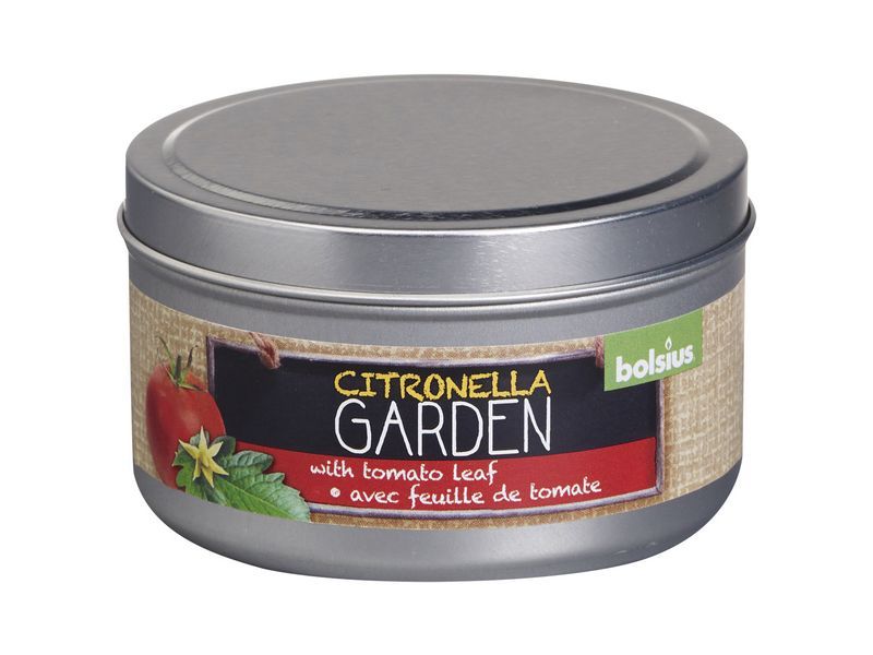 Bolsius Geurkaars Blik Citronella-Tomatenblad 49/87. -- 24 Branduren, door de citronella en heerlijke kruidige geur van tomatenblad, worden muggen en andere insecten of afstand gehouden.