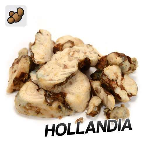 De Psilocybe Hollandia is een relatief nieuwe toevoeging aan het assortiment magic truffels en staat bekend om zijn hoge concentratie psilocybine. Deze sclerotia worden gekweekt in Nederland en zijn het resultaat van jarenlang onderzoek naar krachtigere varianten. De Hollandia bevat naar schatting twee keer zoveel actieve stoffen als de bekende Atlantis truffle. Door een verfijnde kweekmethode heeft deze truffle ook een aangename smaak, vergelijkbaar met walnoten, zonder de zure bijsmaak die veel andere truffels kenmerkt.