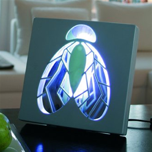 Deze insectenvanger maakt gebruik van blauw Uv-licht met een speciale frequentie om insecten te lokken, die vervolgens geluidloos vast blijven zitten op het lijmvel in de vanger.