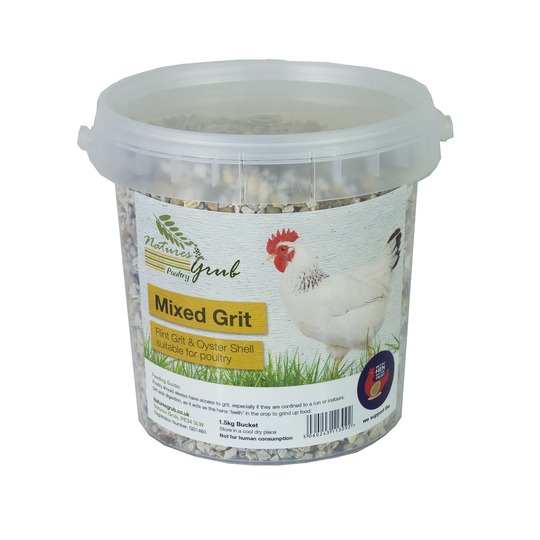 Natures Grub Mixed Grit is een combinatie van Oester schelp & Hennen Grit, Oester Schelp biedt calcium, terwijl de hennen grit wordt gebruikt in de krop om voedsel te vermalen en ervoor te zorgen dat de vogels in staat zijn om te eten en hun voedsel te verteren.
