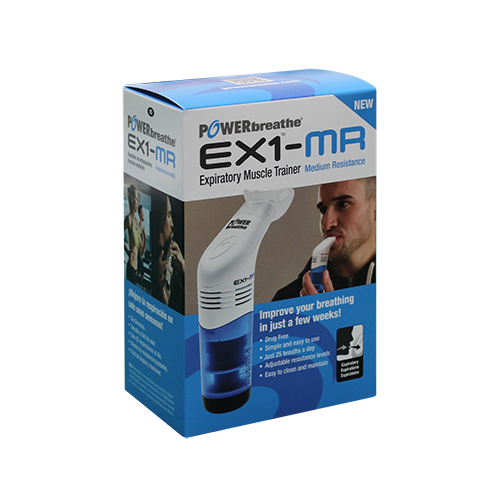 POWERbreathe EX, de nieuwe reeks van expiratoire trainers. Expiratoire training vergroot de hoestkracht en helpt slik- en spraak problemen te verminderen. Met een POWERbreathe EX train je dagelijks kort en effectief de kracht van de spieren waarmee je uitademt. Expiratoire training is aanbevolen bij COPD, MS en Parkinson.