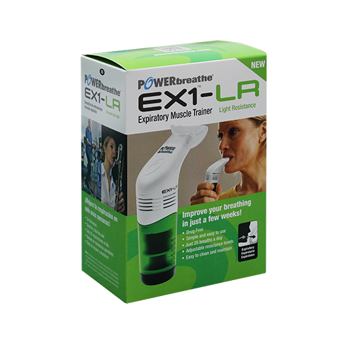 POWERbreathe EX, de nieuwe reeks van expiratoire trainers. Expiratoire training vergroot de hoestkracht en helpt slik- en spraak problemen te verminderen. Met een POWERbreathe EX train je dagelijks kort en effectief de kracht van de spieren waarmee je uitademt. Expiratoire training is aanbevolen bij COPD, MS en Parkinson.
