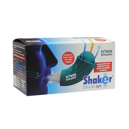 De Shaker Deluxe ‘light’ is, net als de gewone Shaker Deluxe een eenvoudig te gebruiken en zeer effectief hulpmiddel voor het mobiliseren van vastzittend bronchiaal slijm. Door gebruik van een wat lichtere stalen kogel is de kracht die nodig is om de trillende werking te verkrijgen wat lager. De werking is gebaseerd op het veroorzaken van trillingen in de borst. Door die trillingen raakt het vastzittend slijm los en kan opgehoest worden. De Shaker Deluxe ‘light’ is bedoeld voor de wat zwakkere patienten. Net als de gewone Shaker Deluxs heeft de ‘light’ ook maximale ergonomie en is stevig genoeg om intact te blijven als deze een keer mocht vallen. Levering is inclusief twee ergonomische mondstukken; een comfortabel mondstuk van zachte antibacteriële kunststof en een kleiner mondstuk van harde kunststof met een ovale opening. Beide mondstukken kunnen gedraaid worden zodat ook in zijligging gewerkt kan worden. Het product is zodanig ontworpen dat het eenvoudig uit elkaar te halen is voor reiniging en weer snel in elkaar te zetten. Een zachte stoffen hoes wordt meegeleverd, hierin kan de Shaker makkelijk opgeborgen en meegenomen worden zodat hij altijd en overal gebruikt kan worden.