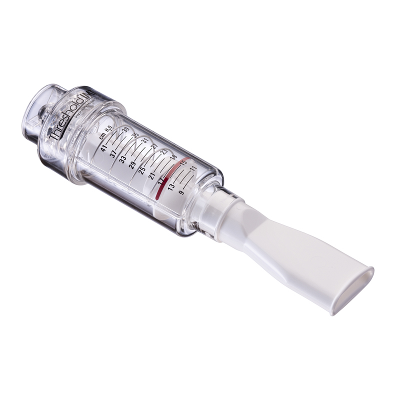 Inspiratoire spiertrainer van fabrikant Respironics. Met de IMT worden de inademingspieren getraind, dit zorgt voor een diepere en krachtigere ademhaling en vermindering van kortademigheid. Wordt gebruikt bij longrevalidatie en pre-operatieve fysiotherapie. De lage, maar fijn instelbare weerstand, maakt de Threshold IMT ideaal voor patienten met een zeer zwakke inademingskracht.